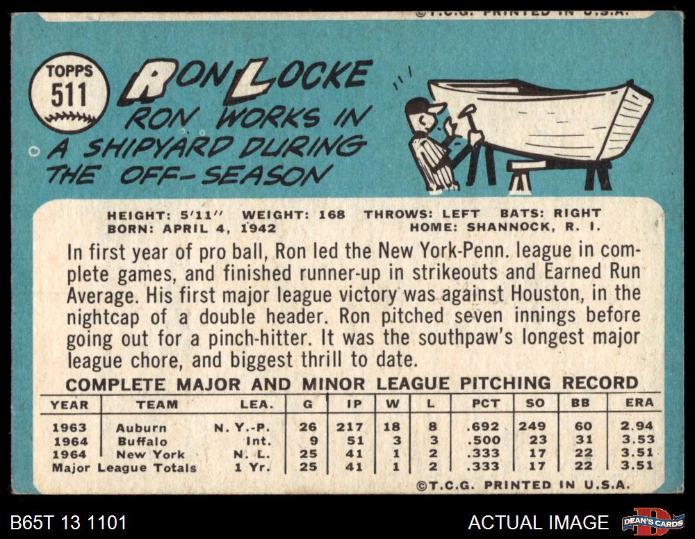 1965 Topps #511 Ron Locke 1.5 - FAIR