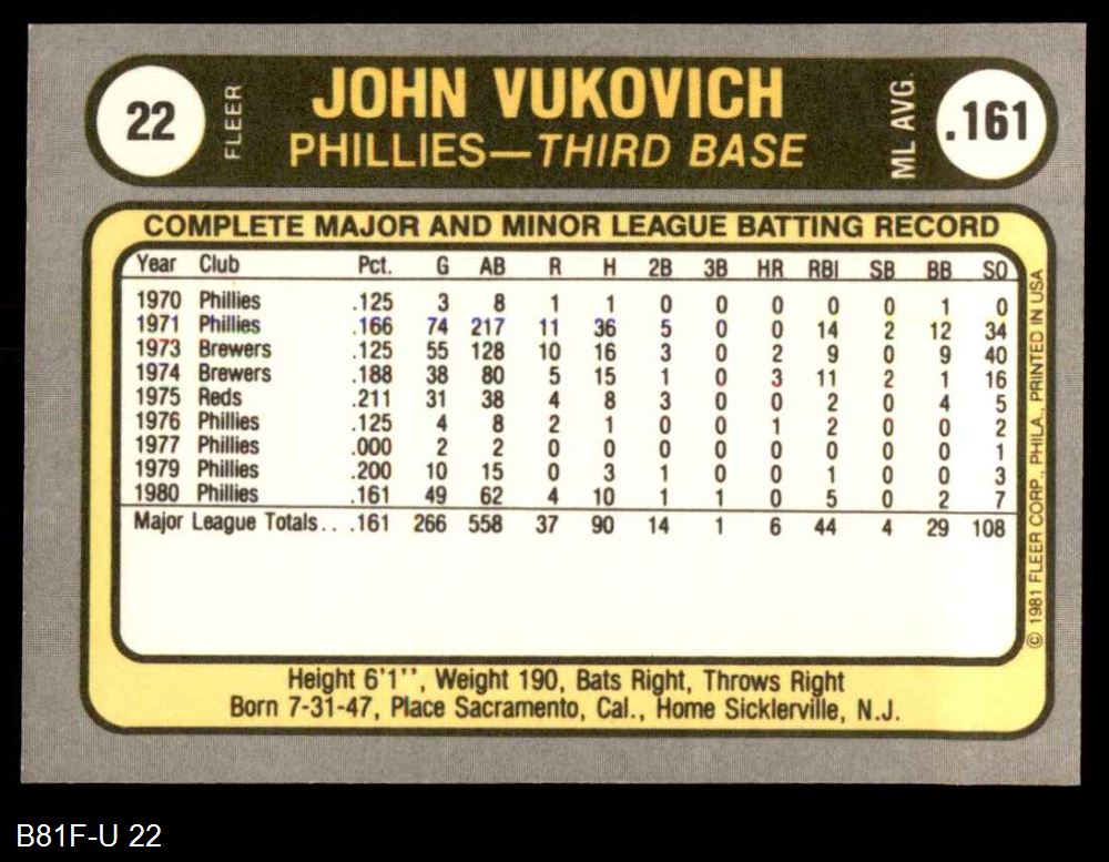 1981 Fleer #22 John Vukovich