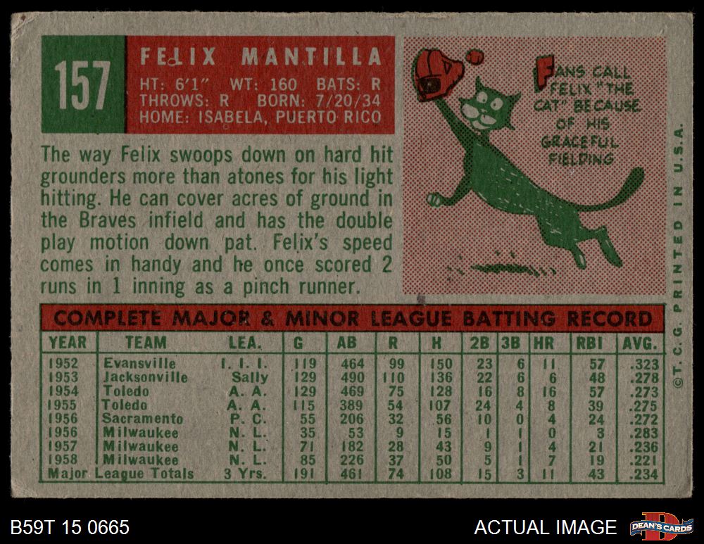 1959 Topps #157 Felix Mantilla 3 - VG