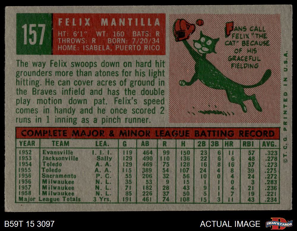 1959 Topps #157 Felix Mantilla 5 - EX