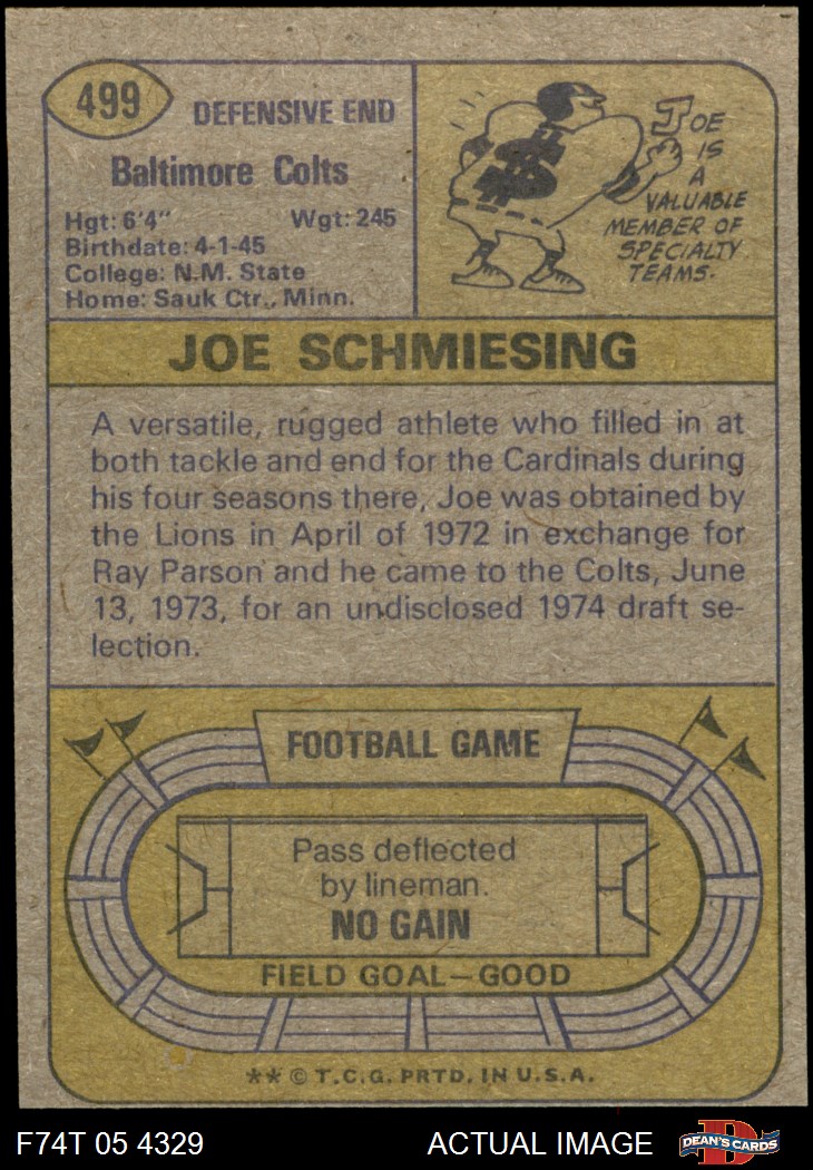 1974 Topps #499 Joe Schmiesing 4 - VG/EX