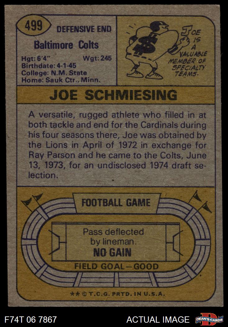 1974 Topps #499 Joe Schmiesing 6 - EX/MT