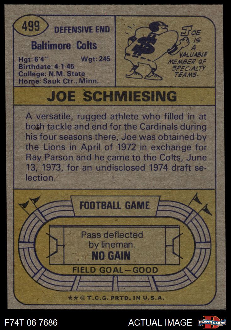 1974 Topps #499 Joe Schmiesing 7 - NM