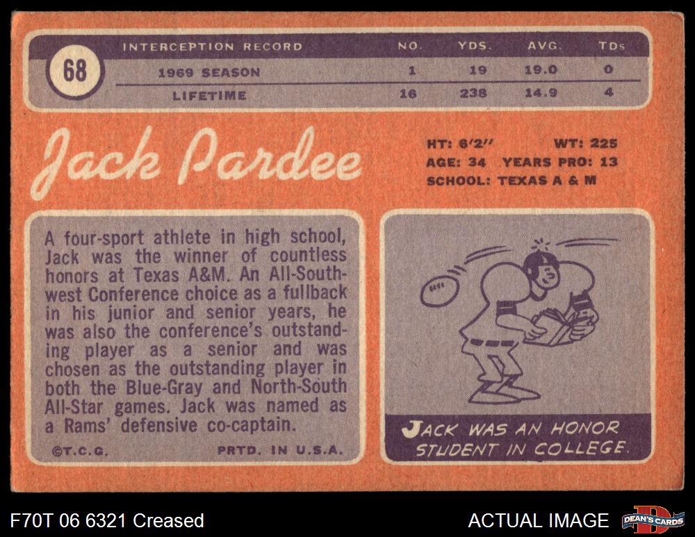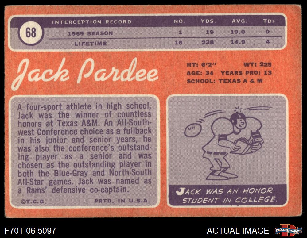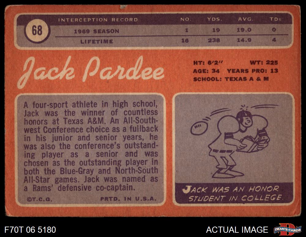1970 Topps #68 Jack Pardee 1.5 - FAIR