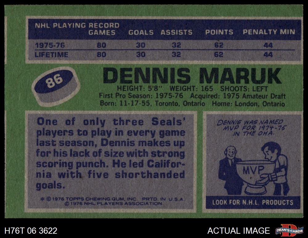 1976 Topps #86 Dennis Maruk 6 - EX/MT