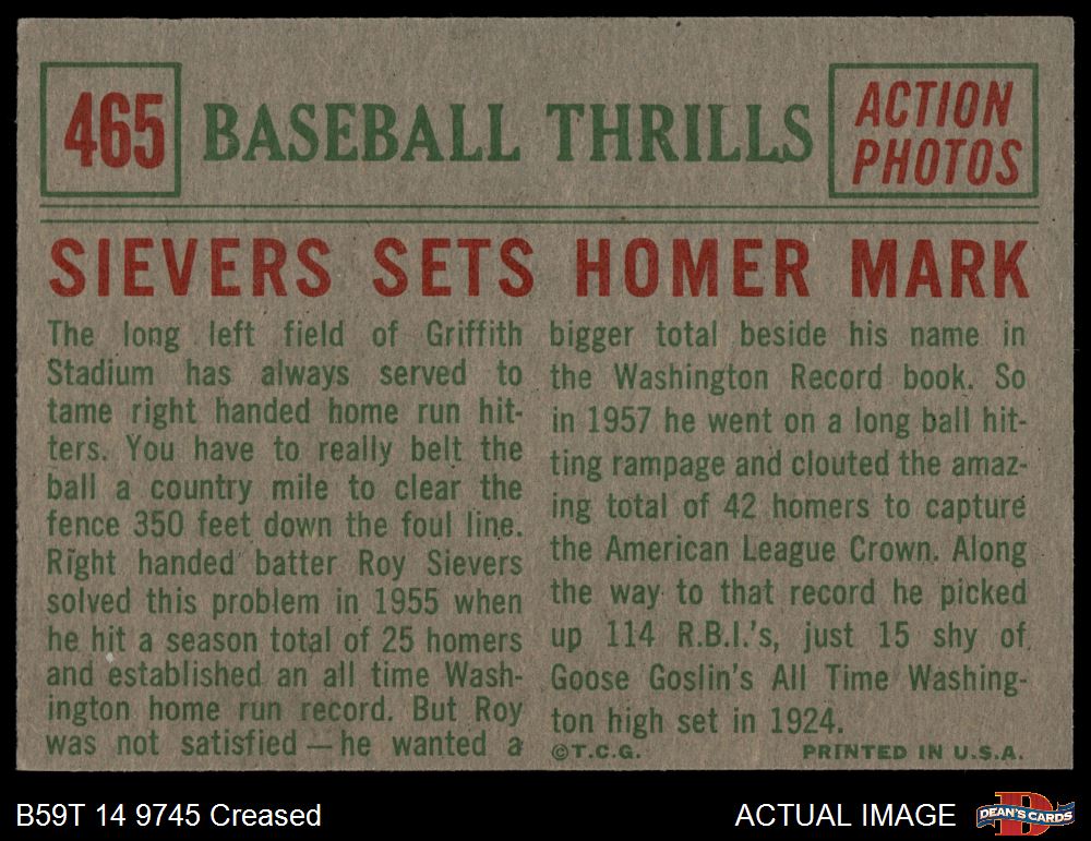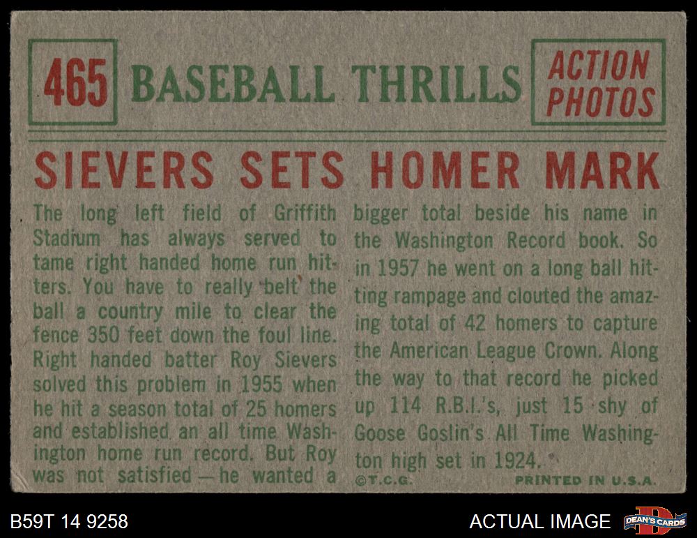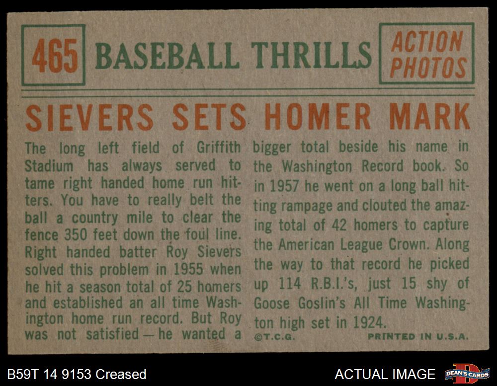 1959 Topps #465 - Roy Sievers Sets Homer Mark 3 - VG