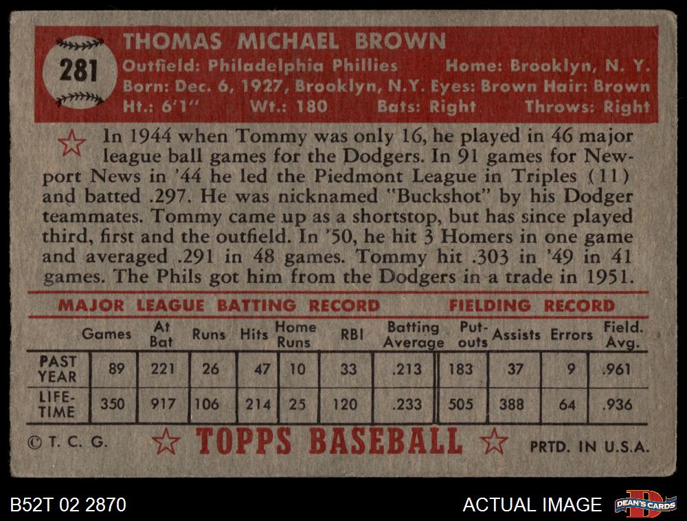 1952 Topps #281 Tommy Brown 2 - GOOD