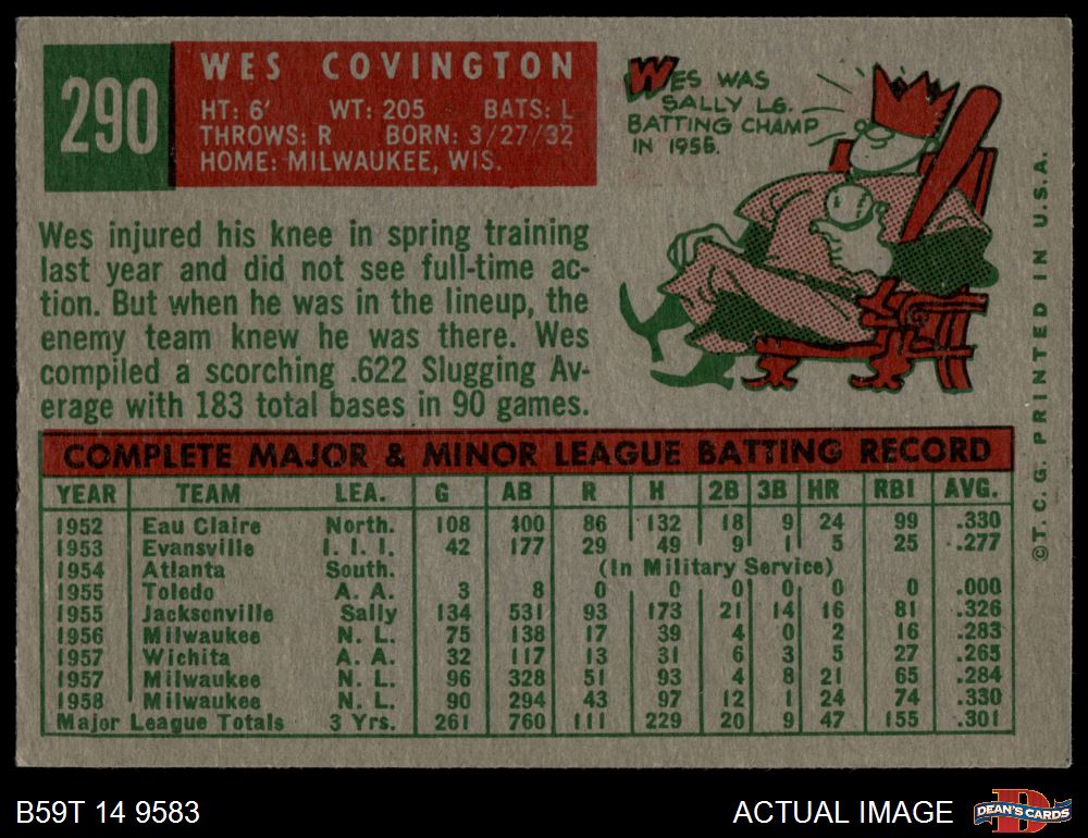 1959 Topps #290 Wes Covington 5.5 - EX+