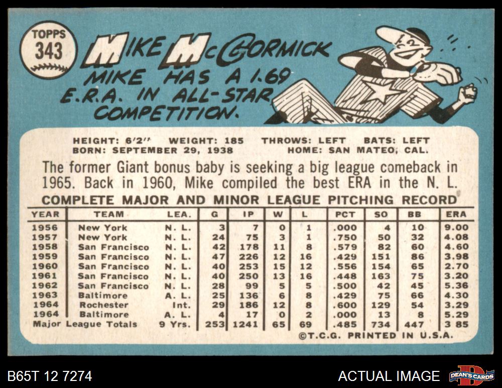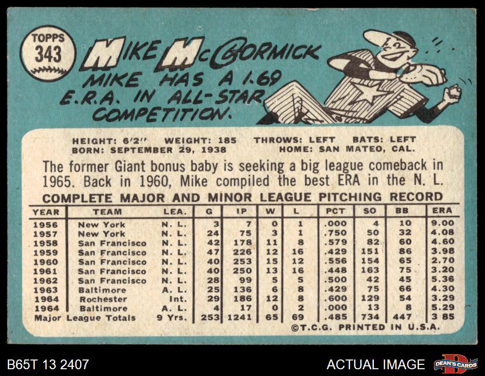 1965 Topps #343 Mike McCormick 4 - VG/EX