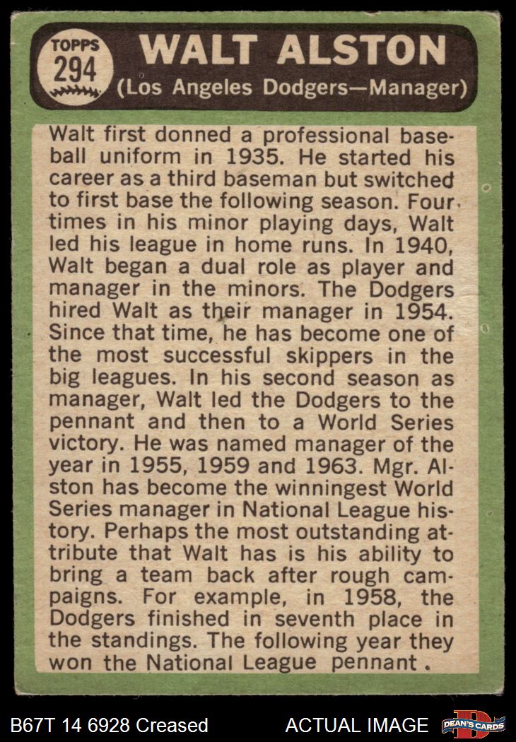 1967 Topps #294 Walter Alston 2.5 - GD+