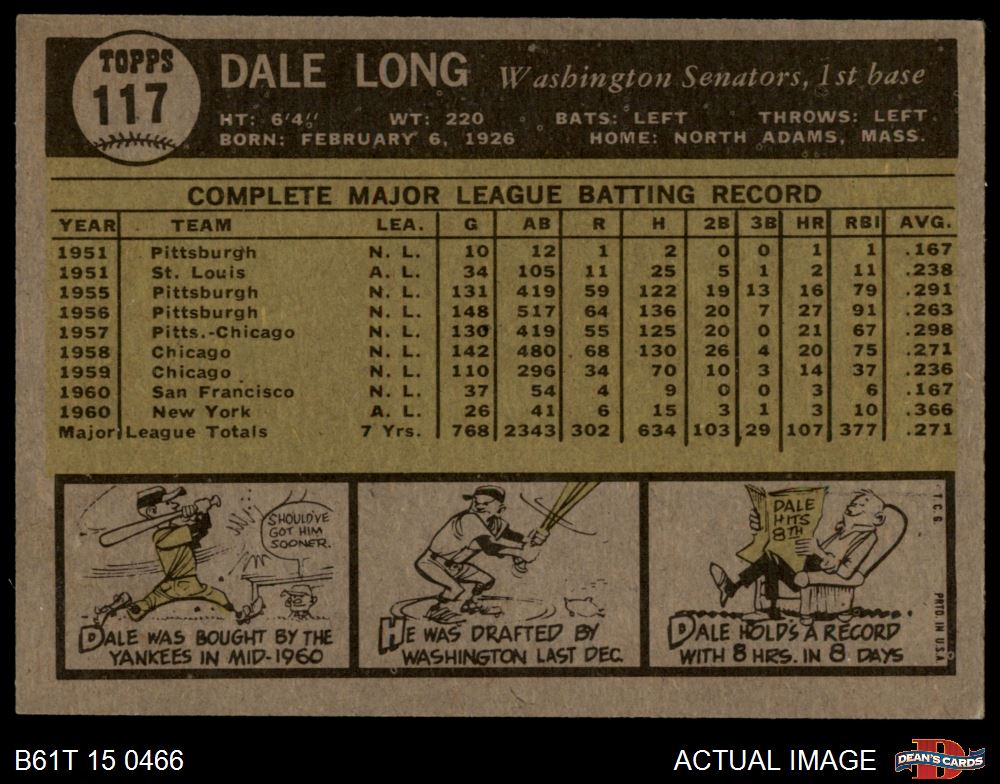 1961 Topps #117 Dale Long 5 - EX