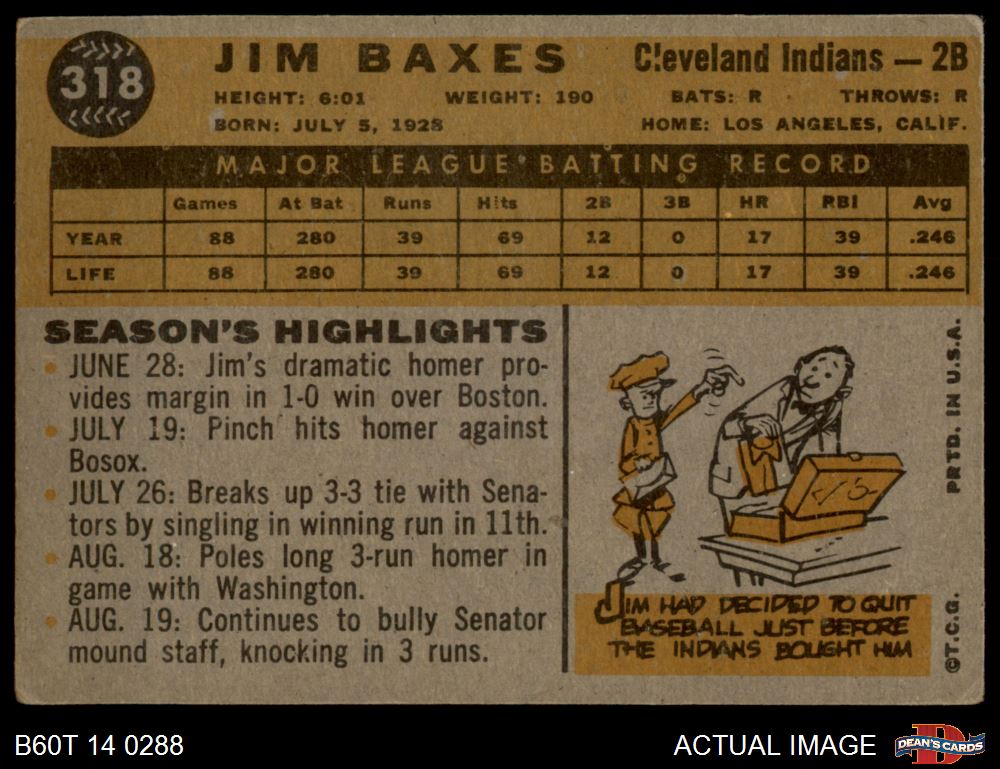 1960 Topps #318 Jim Baxes 2 - GOOD
