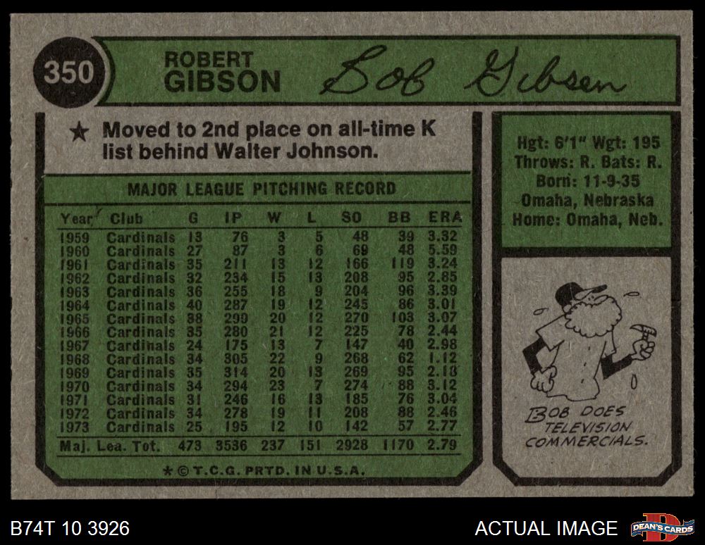 1974 Topps #350 Bob Gibson 6 - EX/MT