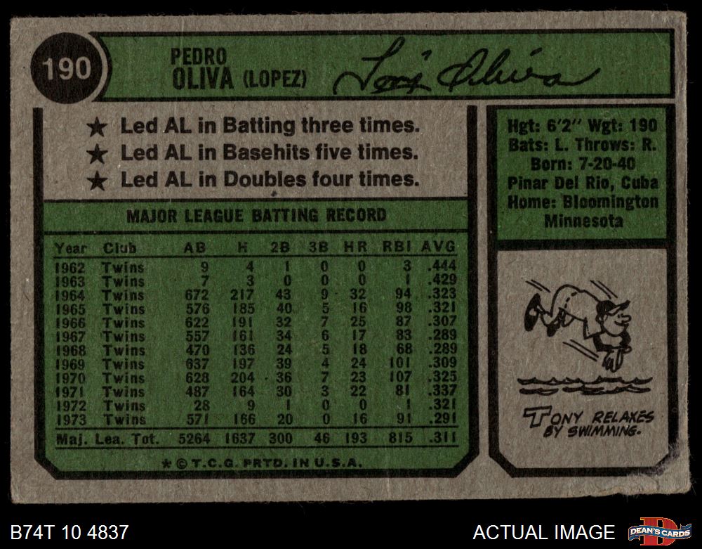 1974 Topps #190 Tony Oliva AUTHENTIC