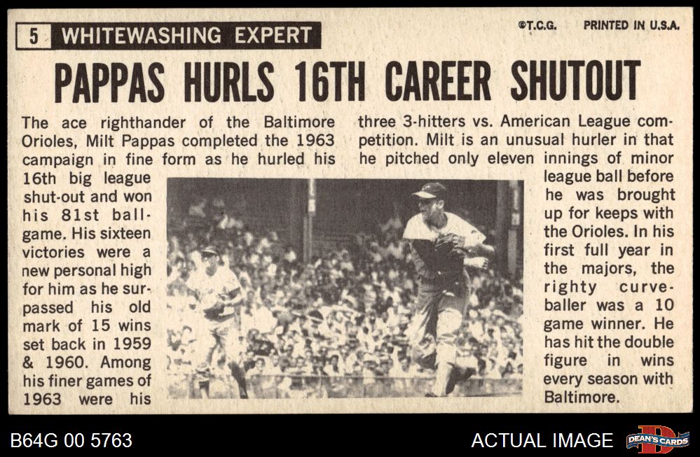1964 Topps Giants #5 Milt Pappas 3 - VG