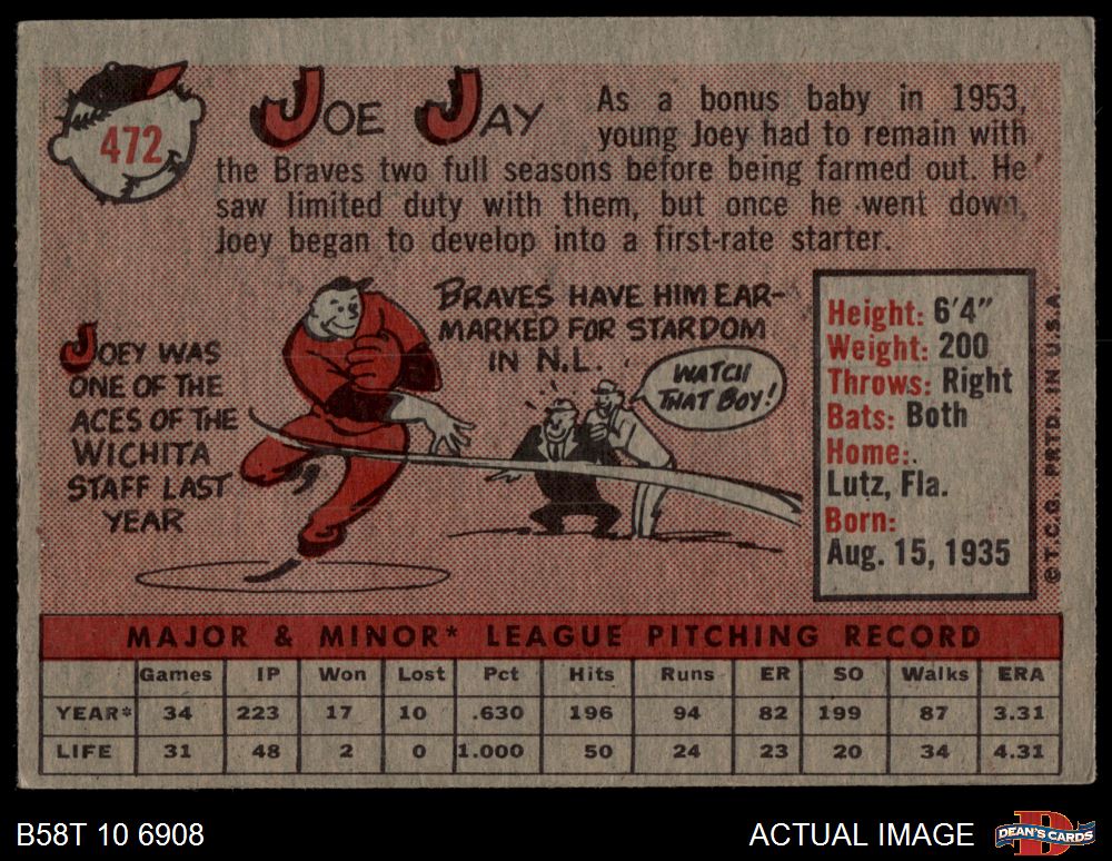 1958 Topps #472 Joey Jay 3 - VG