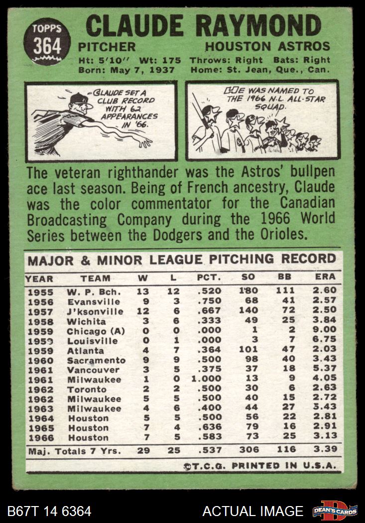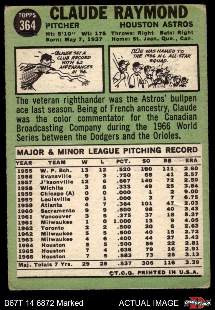 1967 Topps #364 Claude Raymond