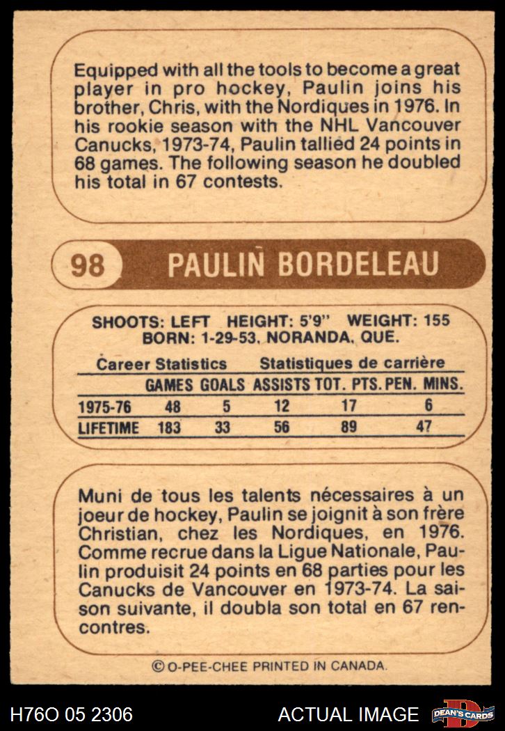 1976 O-Pee-Chee WHA #98 Paulin Bordeleau 4 - VG/EX