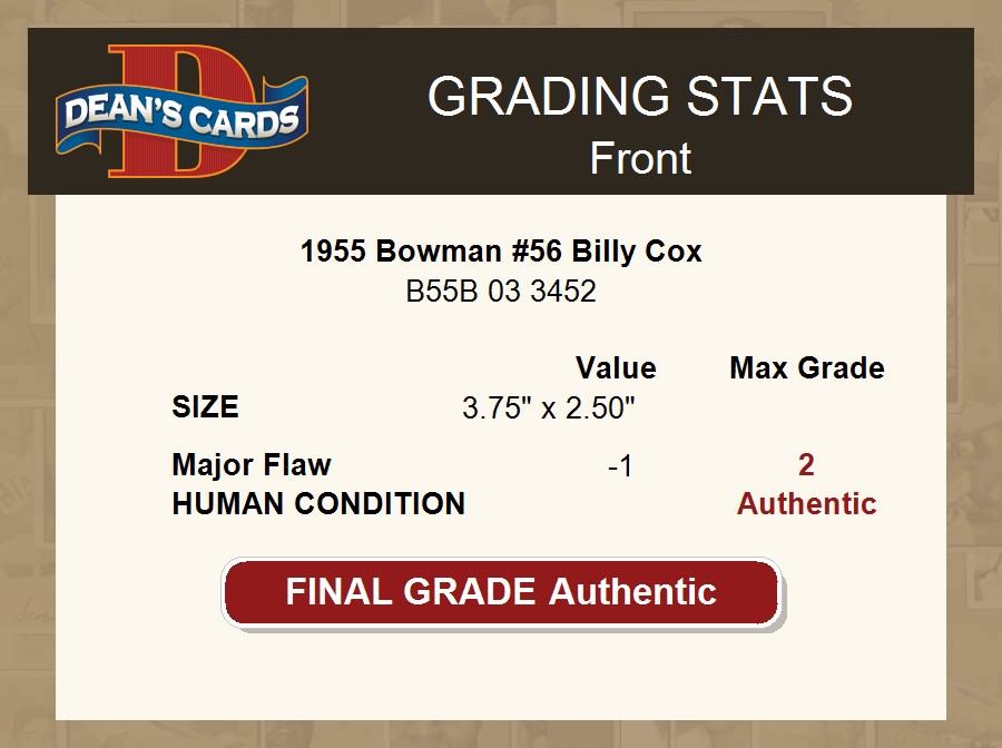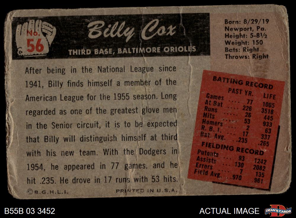1955 Bowman #56 Billy Cox AUTHENTIC