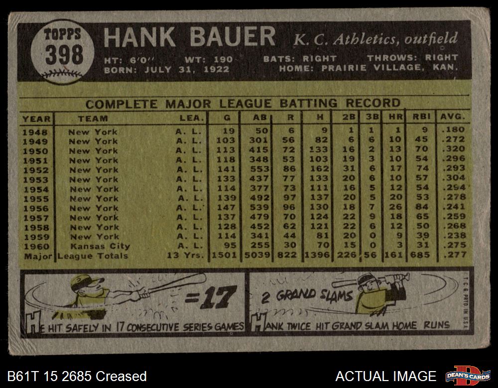 1961 Topps #398 Hank Bauer 2 - GOOD
