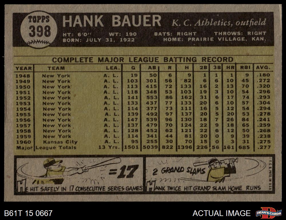 1961 Topps #398 Hank Bauer 5.5 - EX+