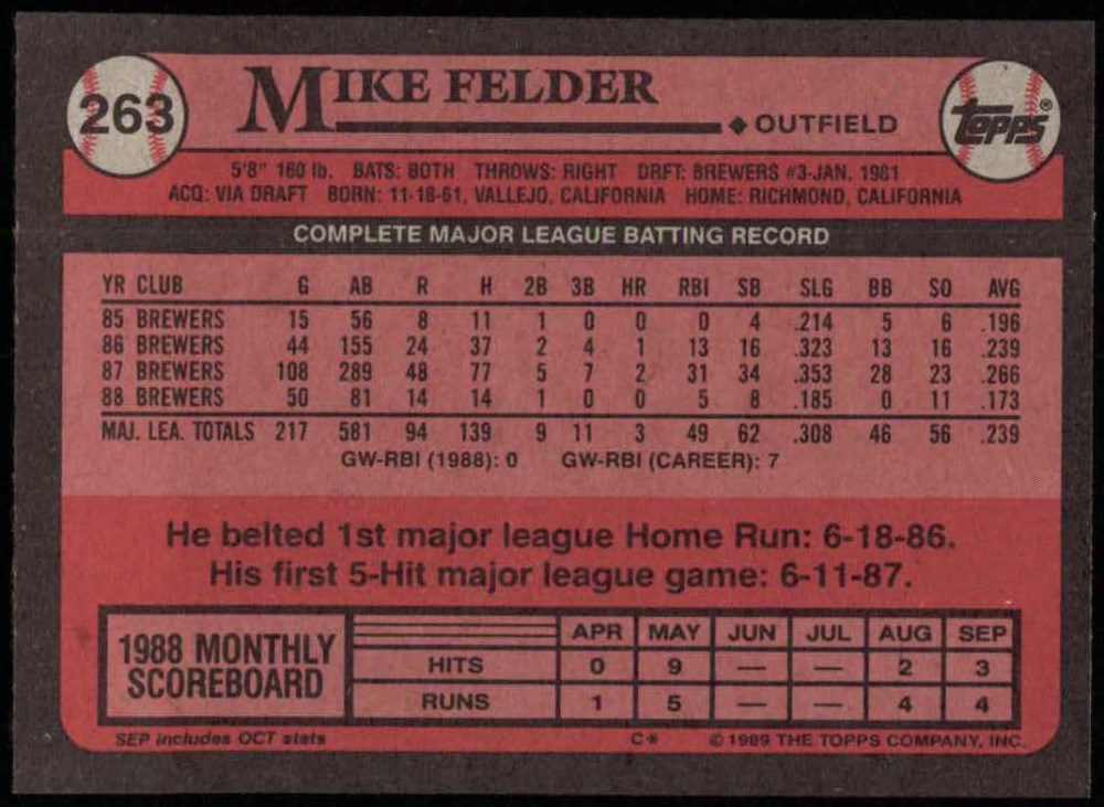 1989 Topps #263 Mike Felder 8 - NM/MT