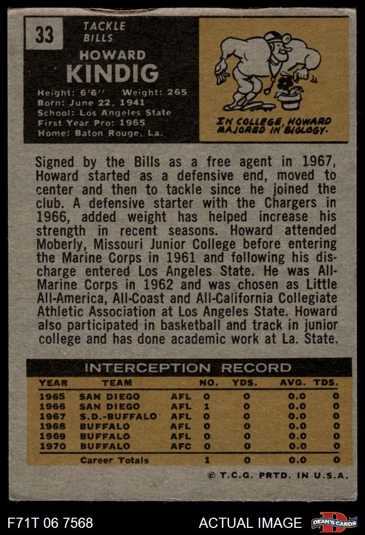 1971 Topps #33 Howard Kindig