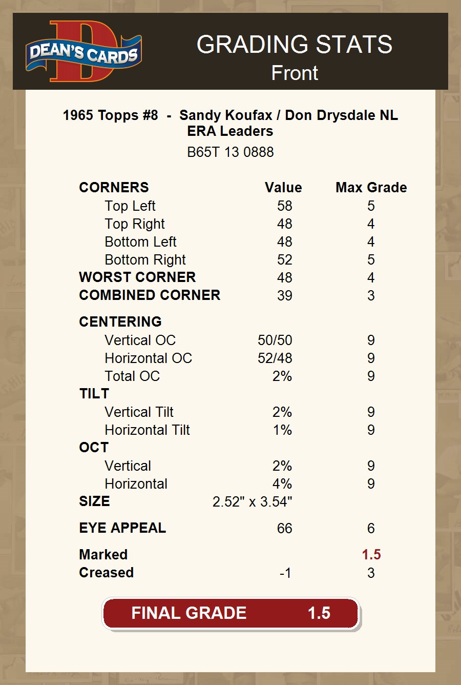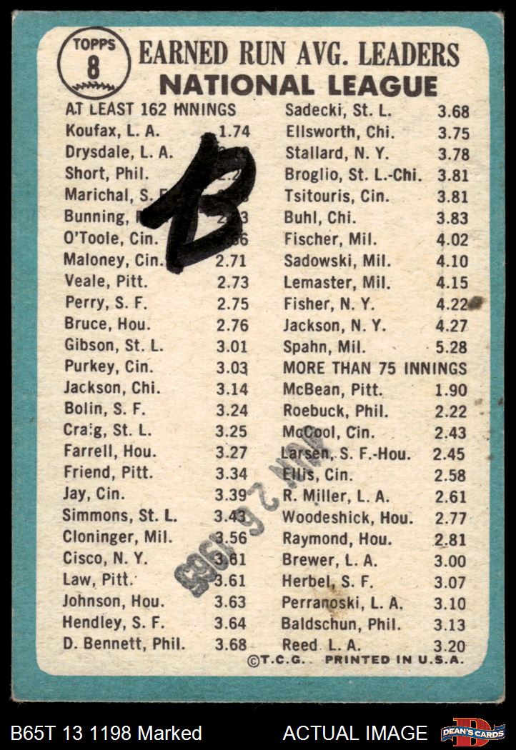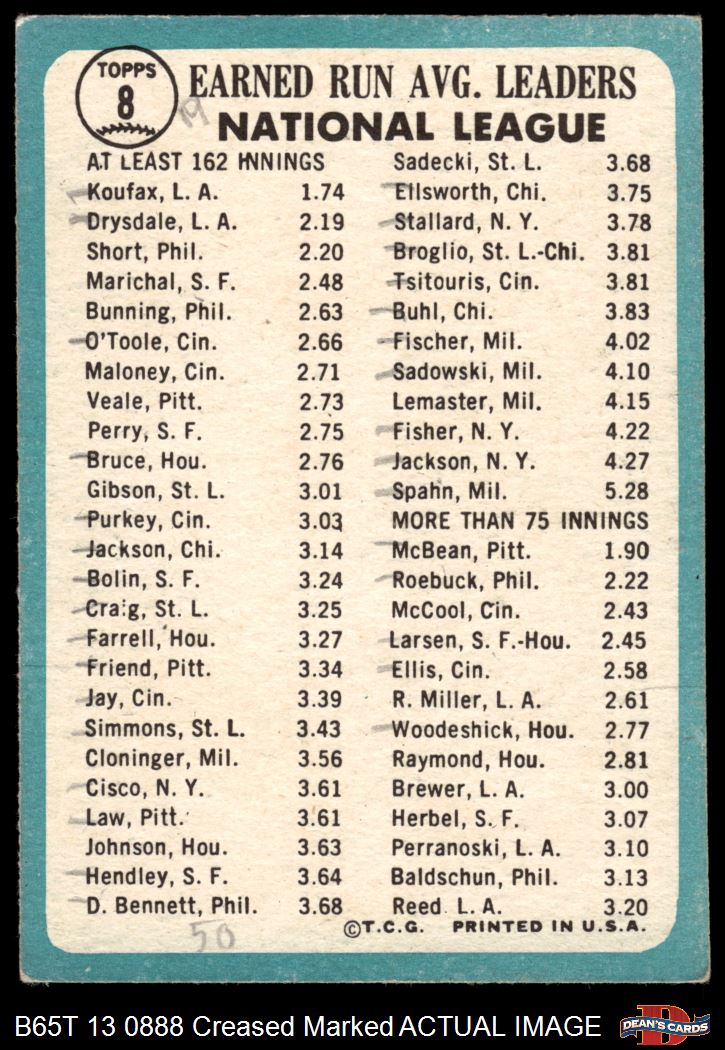 1965 Topps #8 - Sandy Koufax / Don Drysdale NL ERA Leaders 1.5 - FAIR