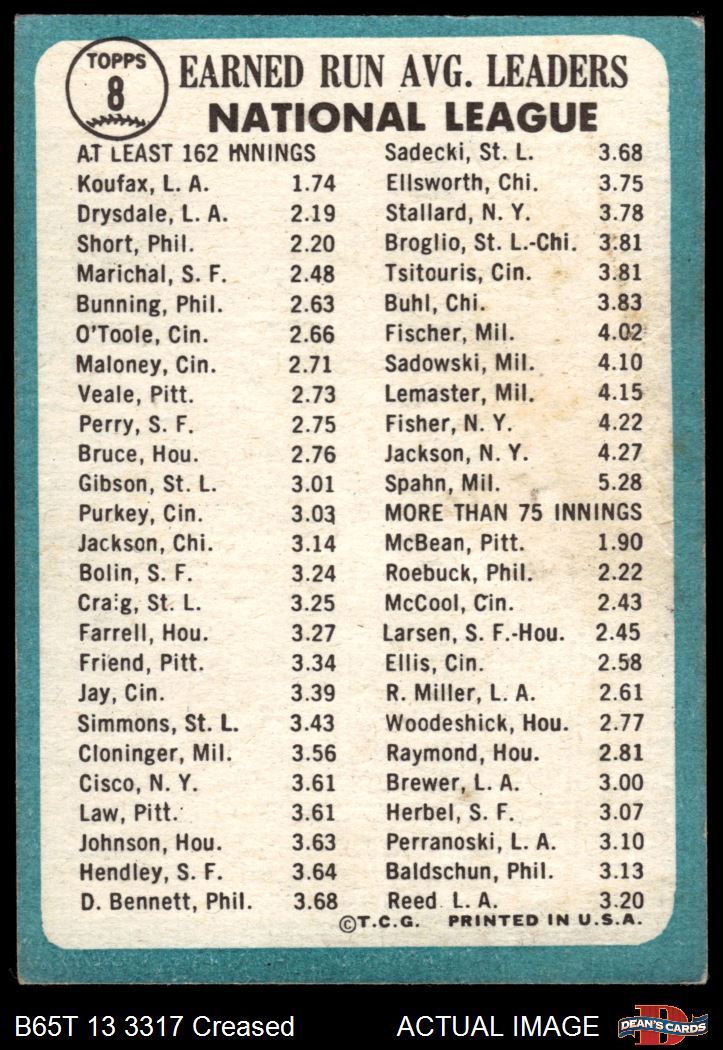 1965 Topps #8 - Sandy Koufax / Don Drysdale NL ERA Leaders 2 - GOOD