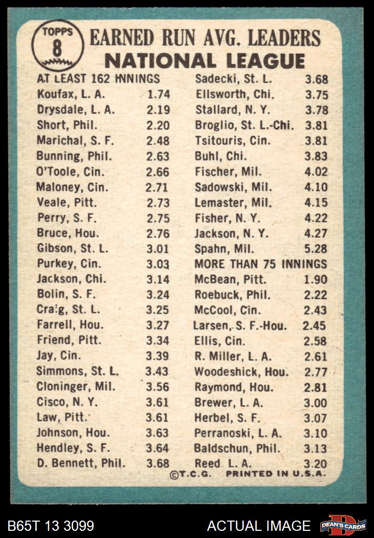 1965 Topps #8 - Sandy Koufax / Don Drysdale NL ERA Leaders 5 - EX