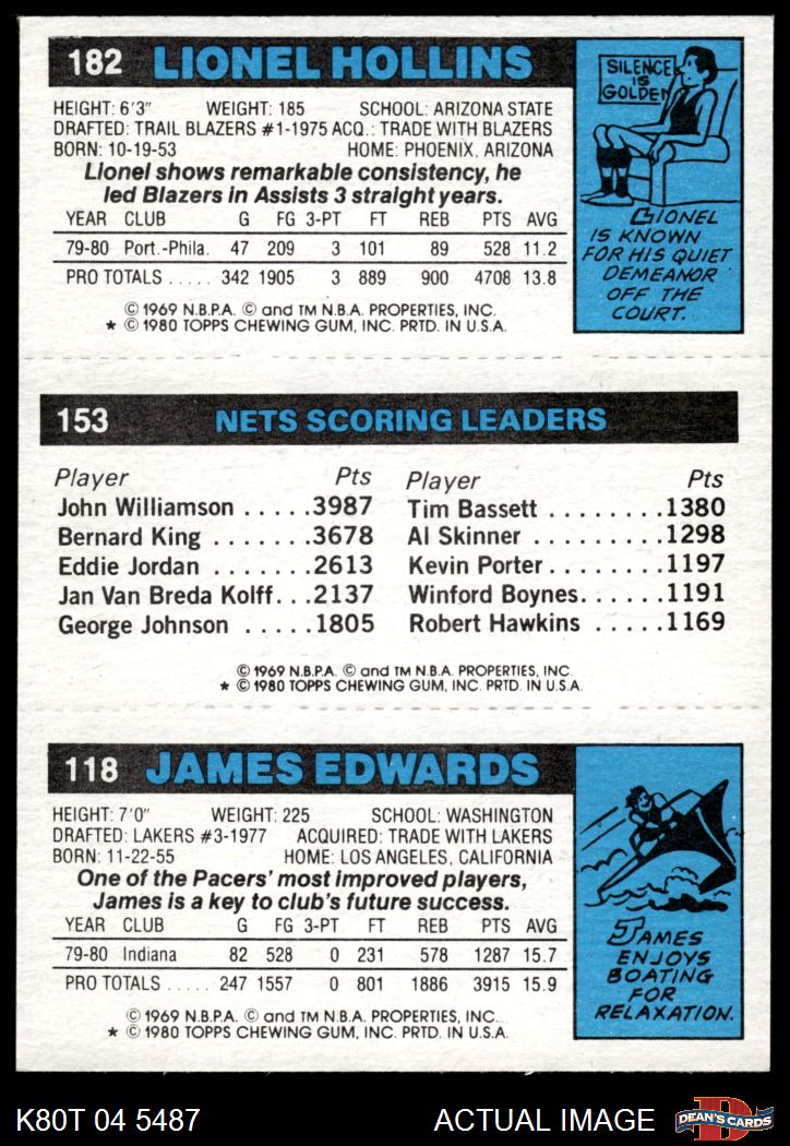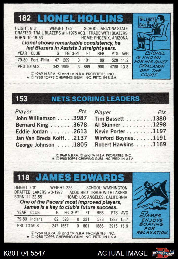 1980 Topps - James Edwards / Mike Newlin / Lionel Hollins 118 / 153 / 182 7 - NM