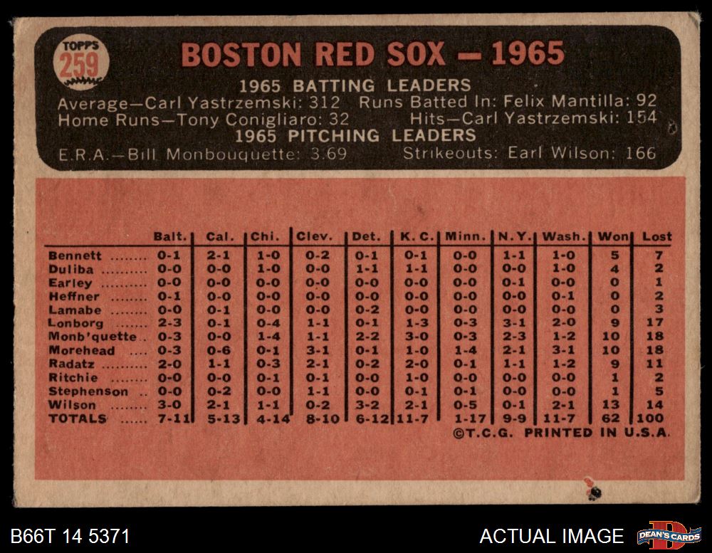 1966 Topps #259  Red Sox Team Front Thumbnail