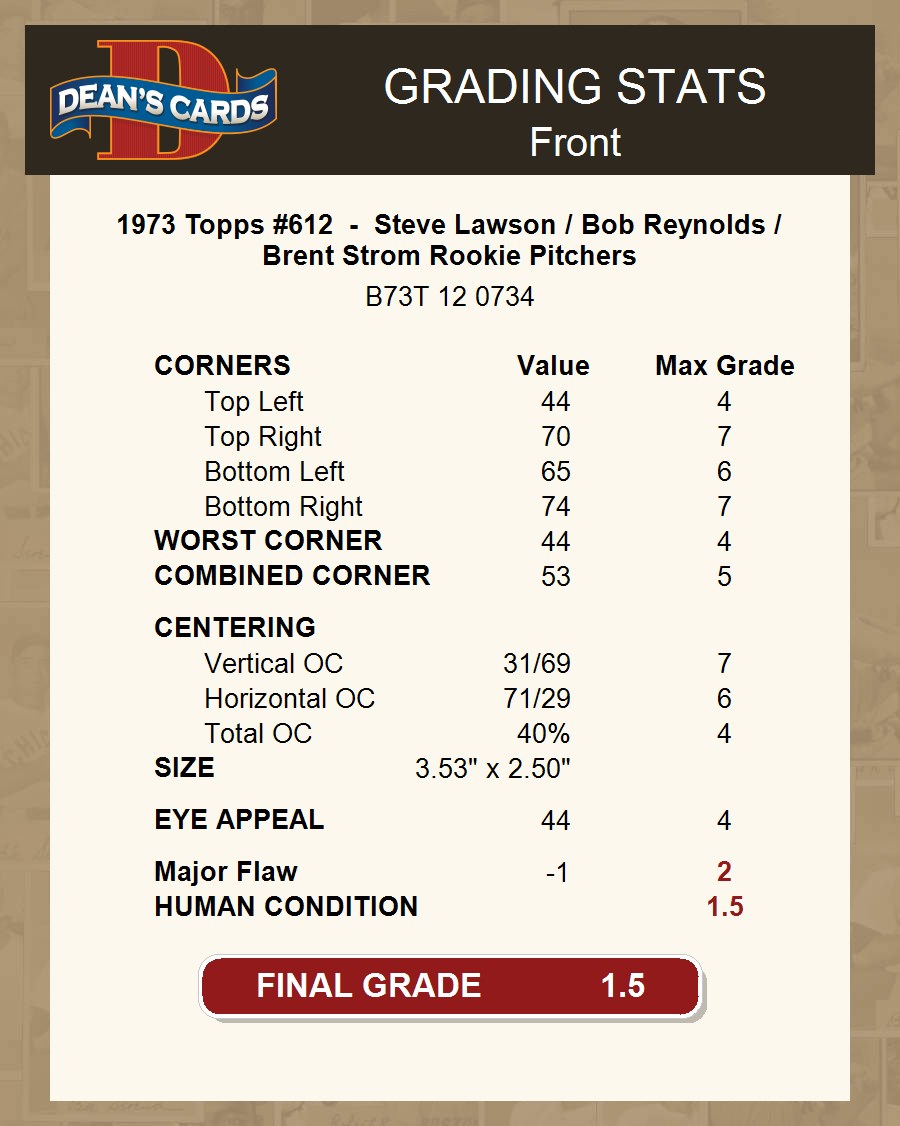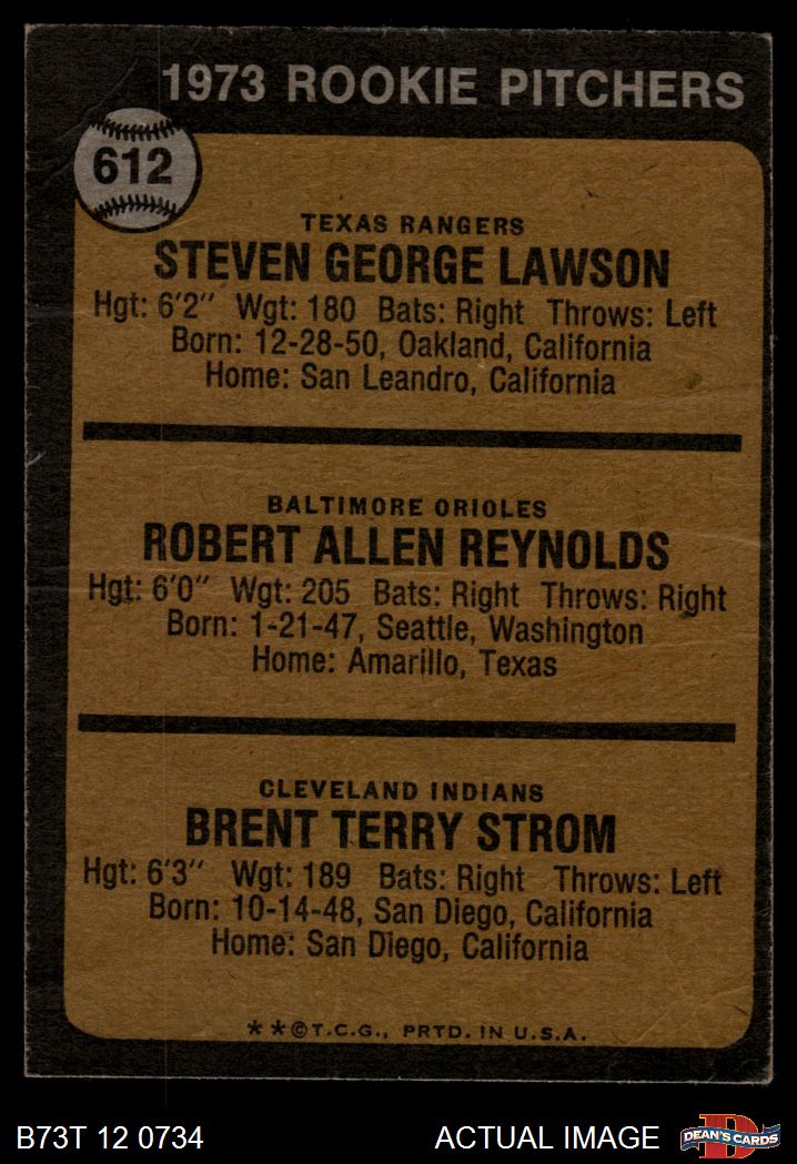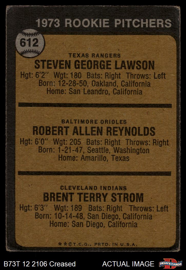 1973 Topps #612 - Steve Lawson / Bob Reynolds / Brent Strom Rookie Pitchers 1.5 - FAIR