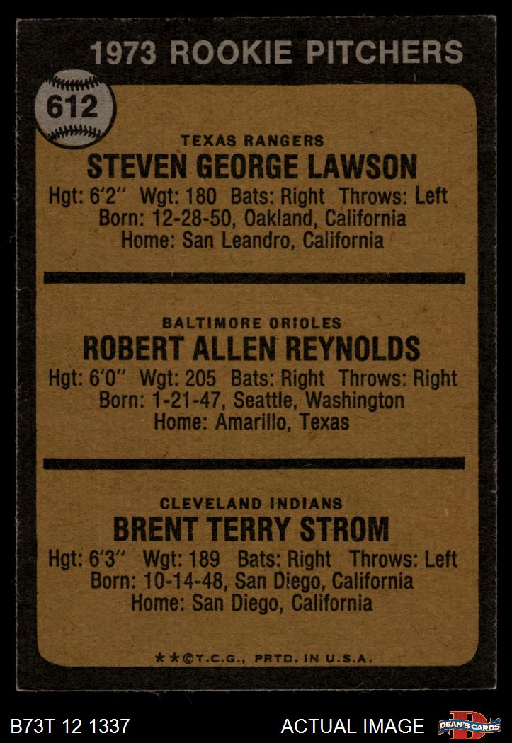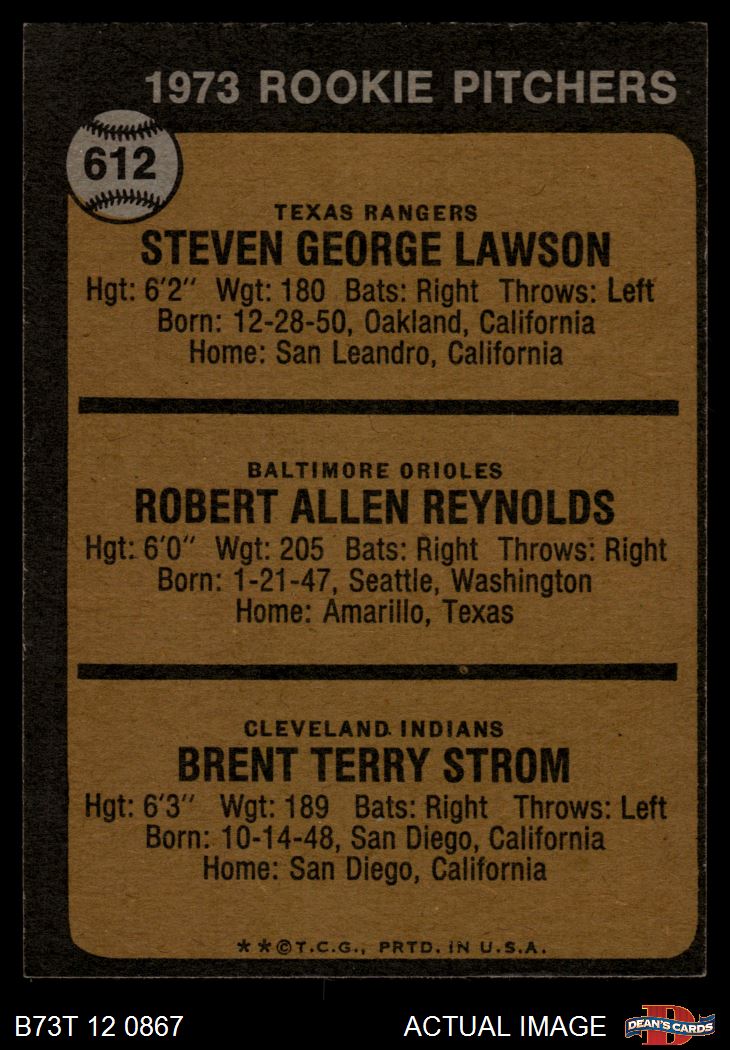 1973 Topps #612 - Steve Lawson / Bob Reynolds / Brent Strom Rookie Pitchers 5 - EX