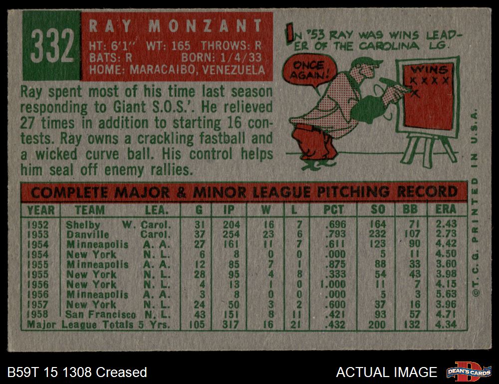 1959 Topps #332 Ray Monzant 2 - GOOD