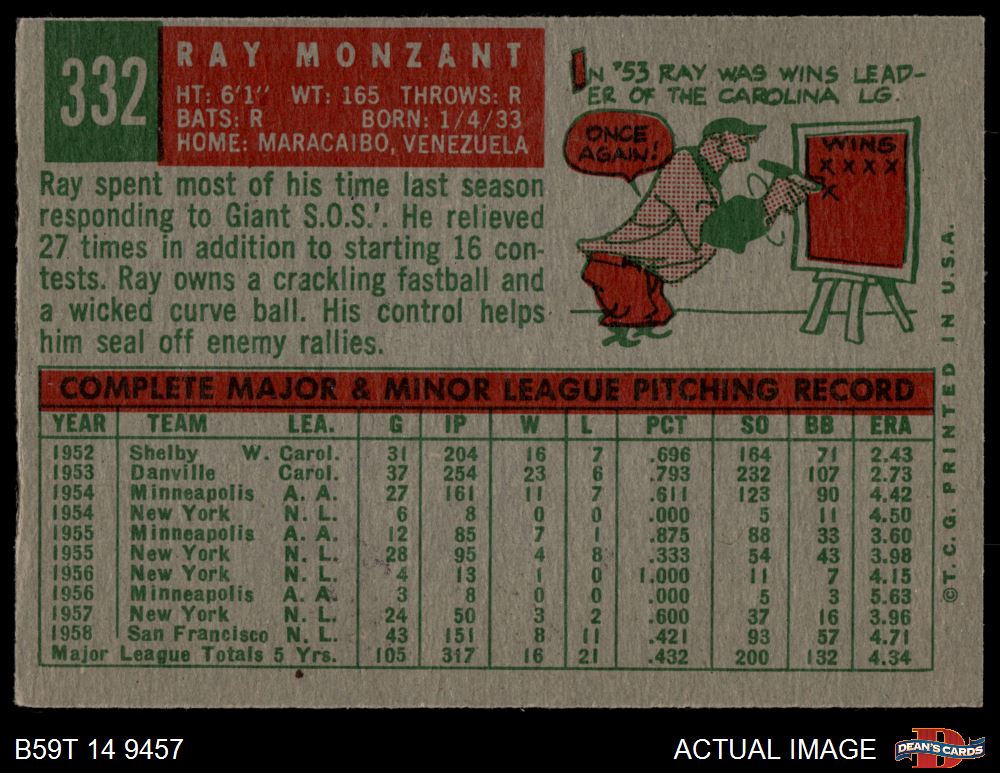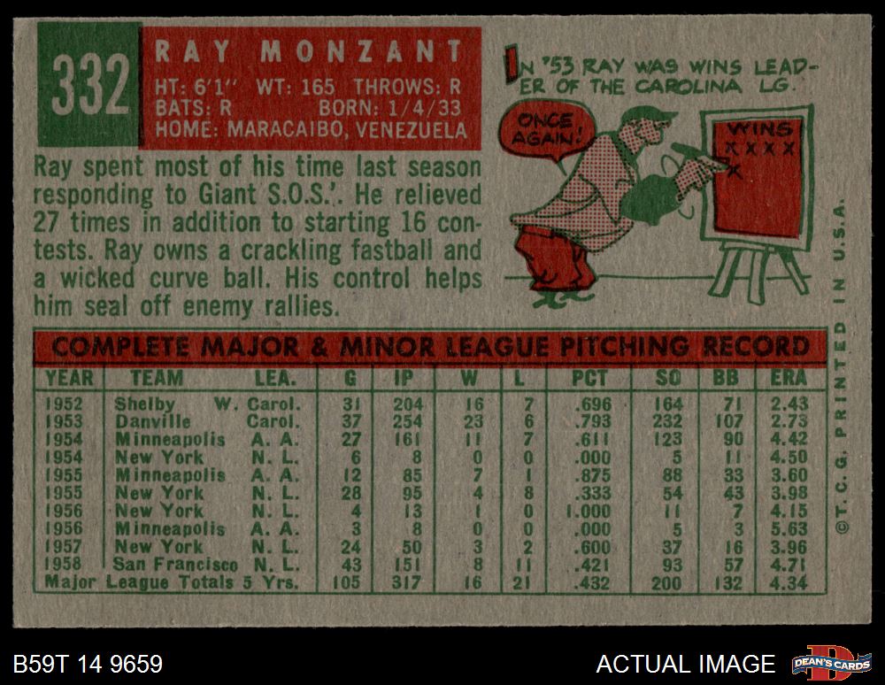 1959 Topps #332 Ray Monzant 4 - VG/EX