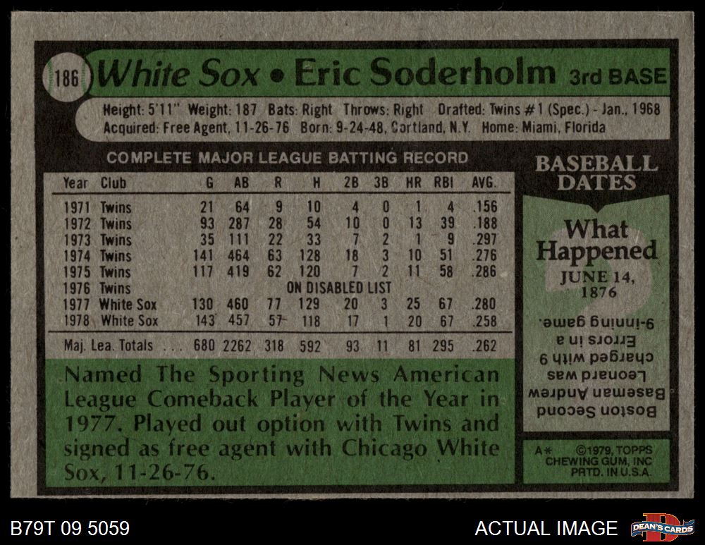 1979 Topps #186 Eric Soderholm 5 - EX