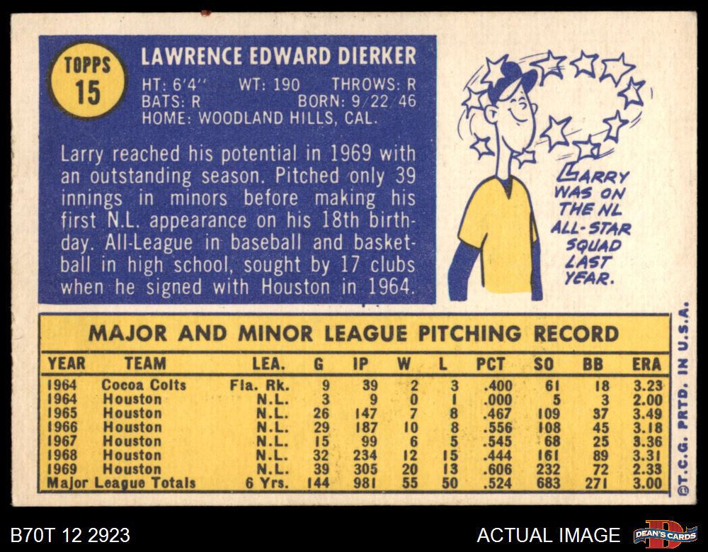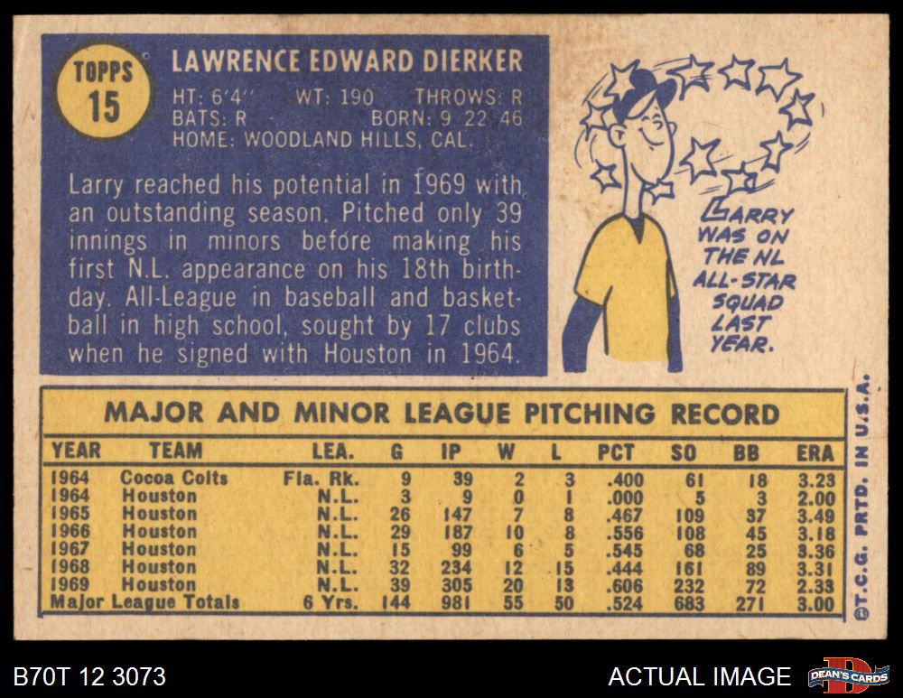 1970 Topps #15 Larry Dierker 5 - EX