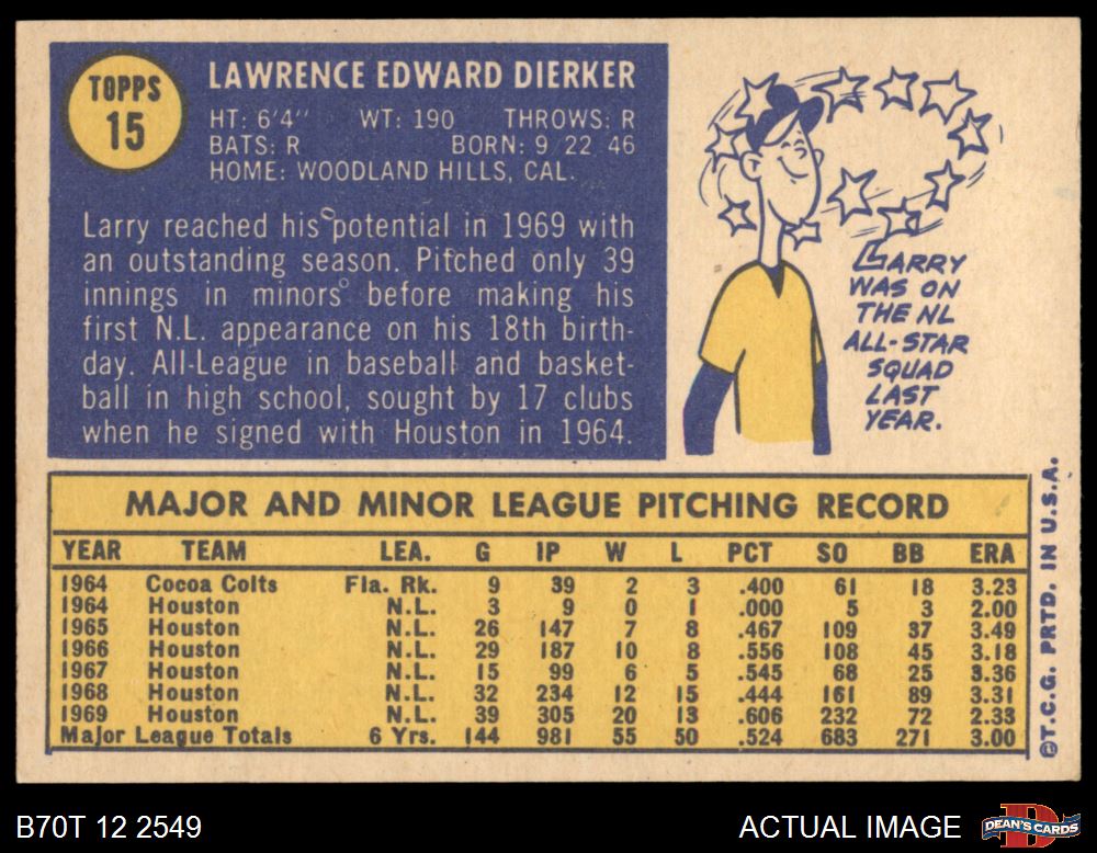 1970 Topps #15 Larry Dierker 8 - NM/MT