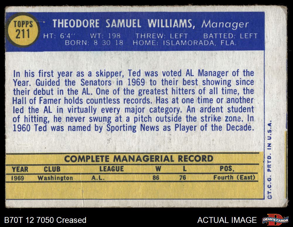 1970 Topps #211 Ted Williams 2 - GOOD