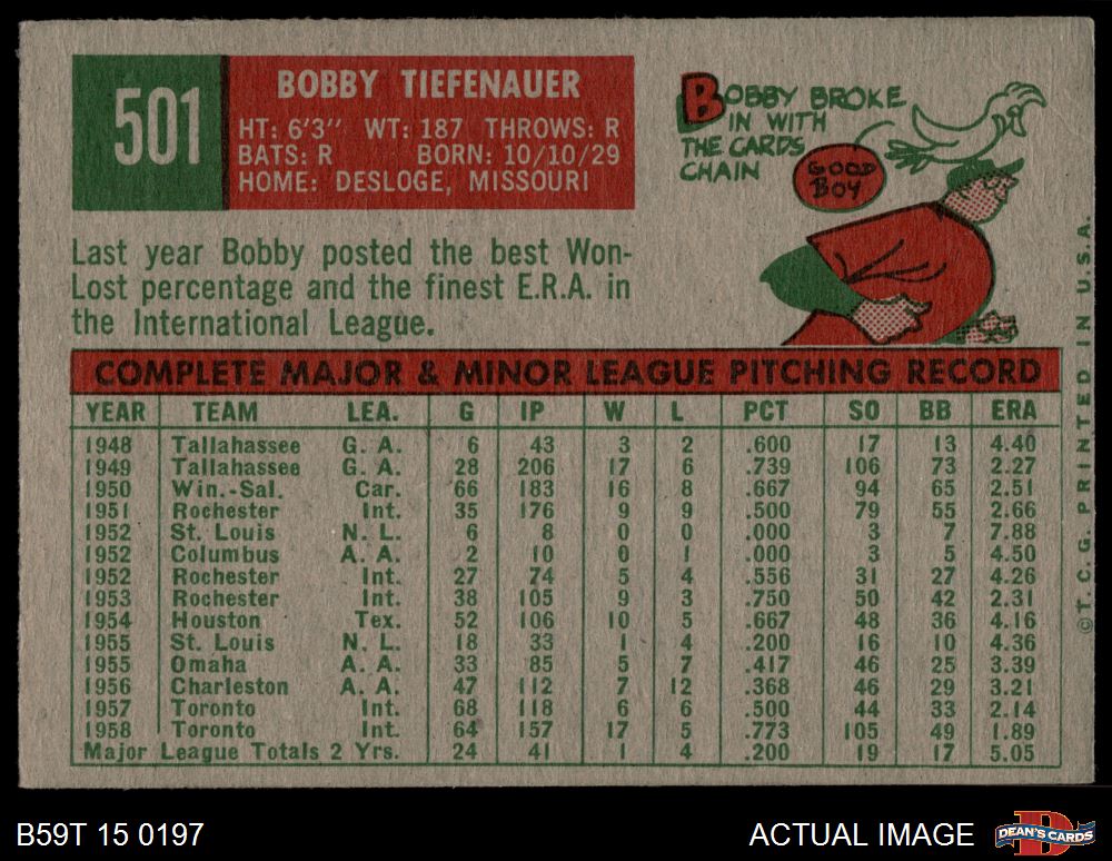 1959 Topps #501 Bob Tiefenauer 2 - GOOD