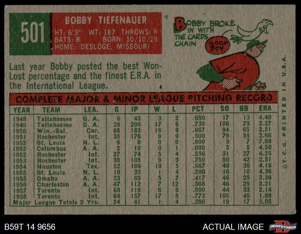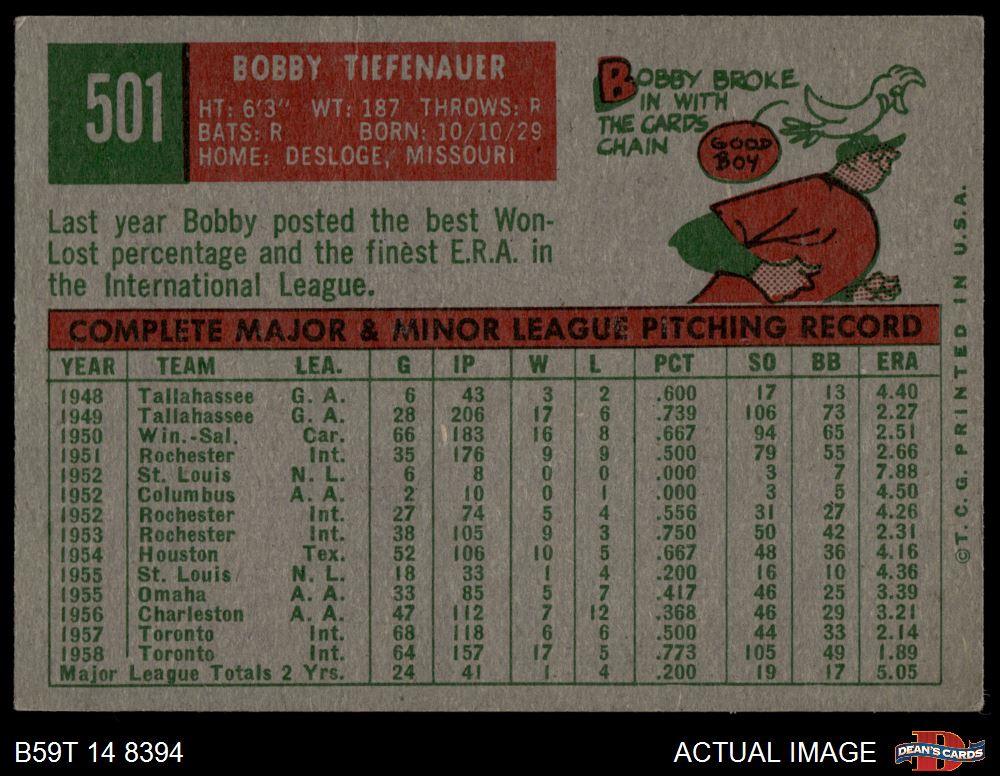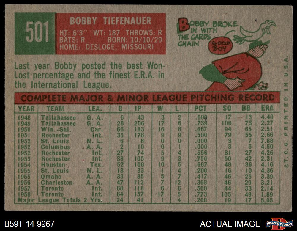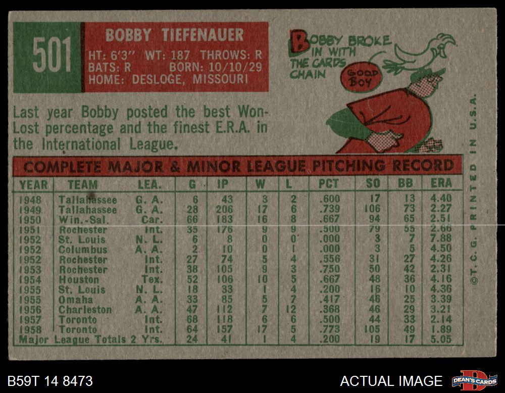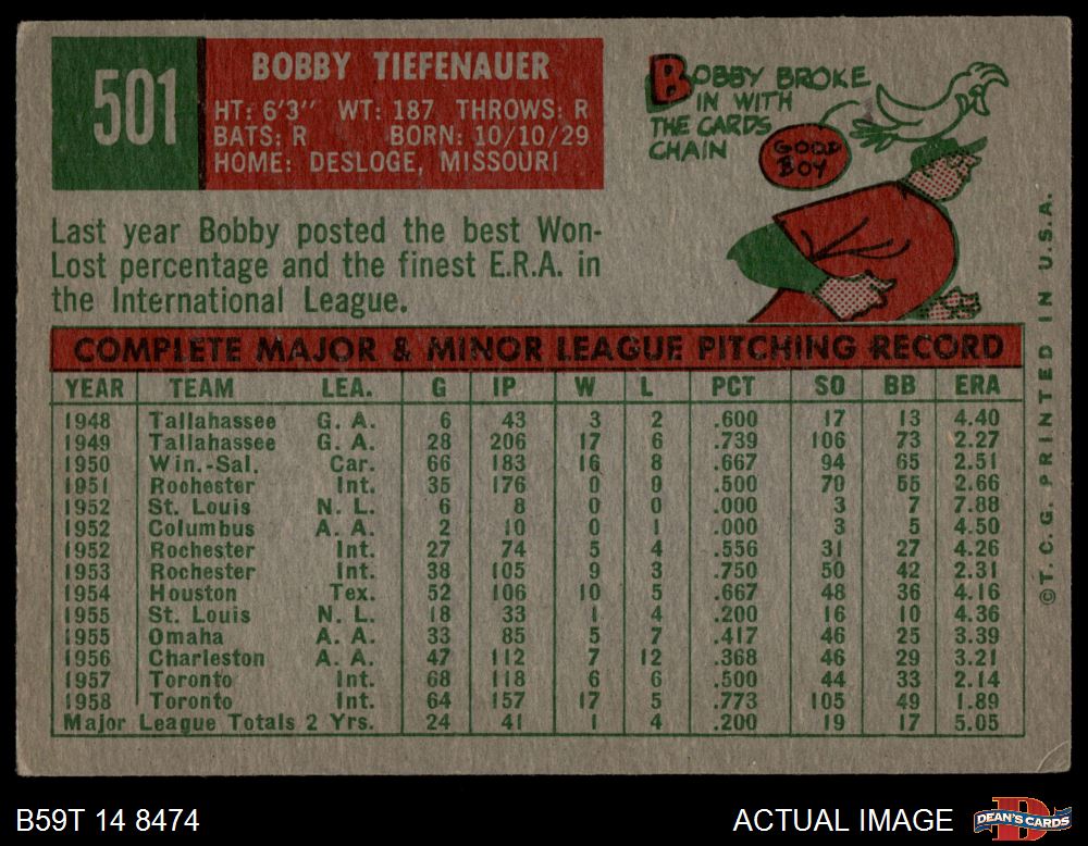 1959 Topps #501 Bob Tiefenauer 4 - VG/EX