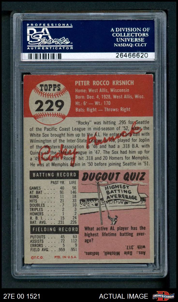 1953 Topps #229 Rocky Krsnich PSA 5 - EX
