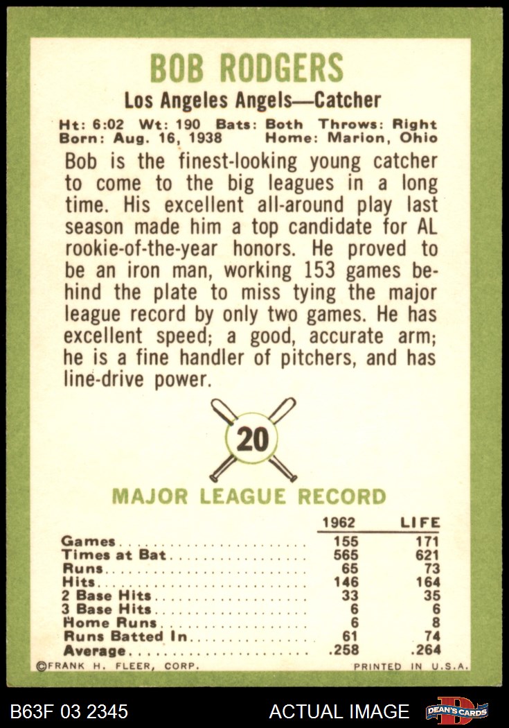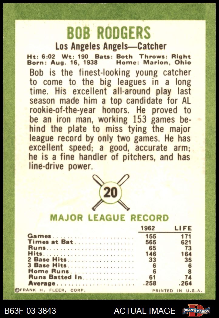 1963 Fleer Baseball (604 available)1963 Fleer Angels (50 available)