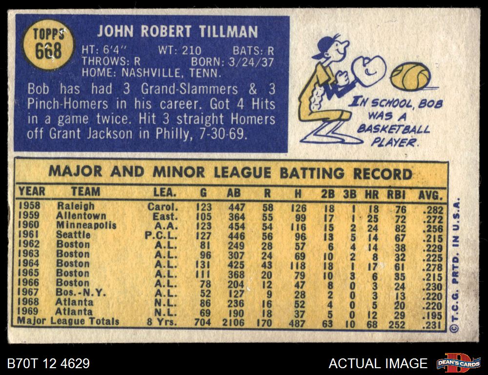 1970 Topps #668 Bob Tillman 2 - GOOD
