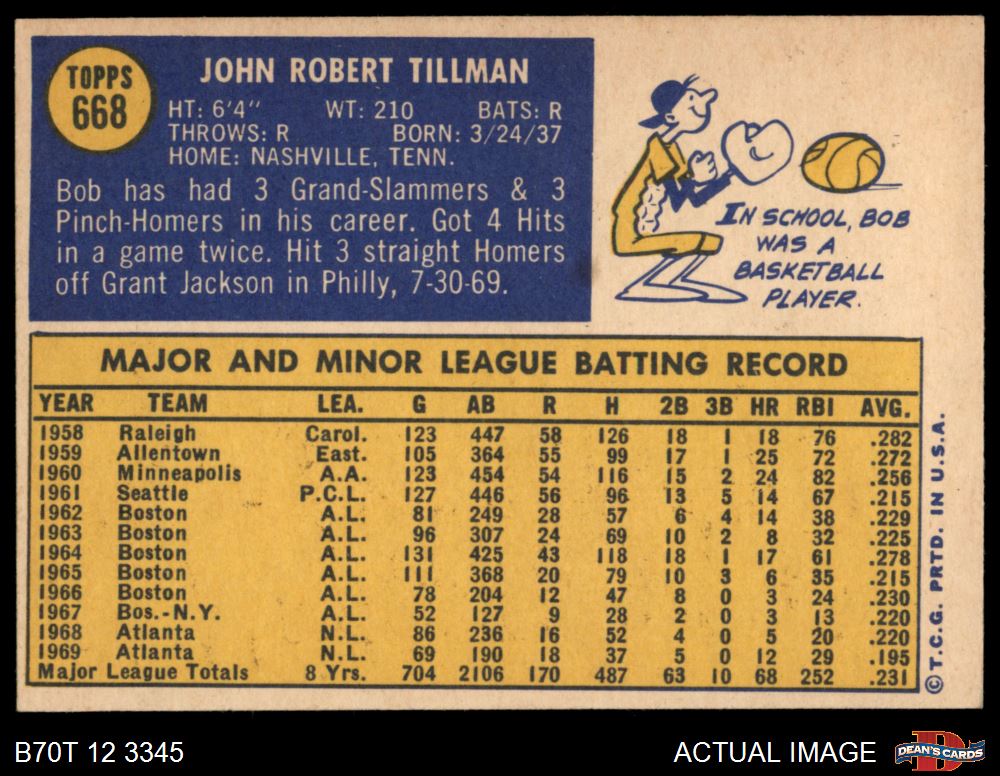 1970 Topps #668 Bob Tillman 4 - VG/EX