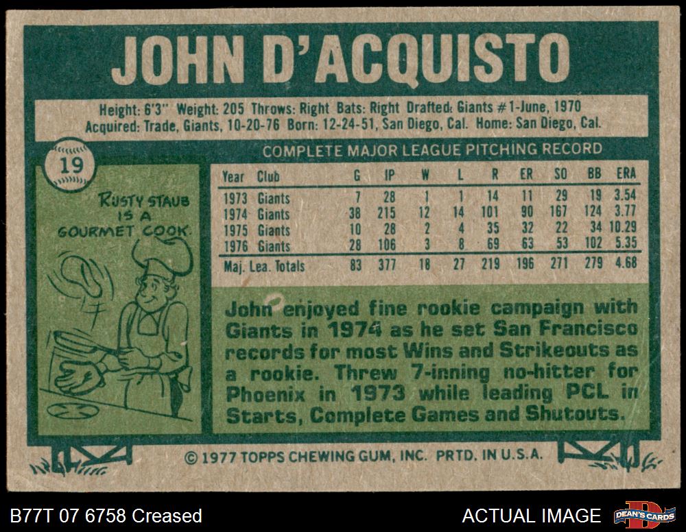 1977 Topps #19 John D'Acquisto Front Thumbnail