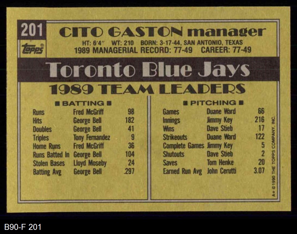 1990 Topps #201 Cito Gaston