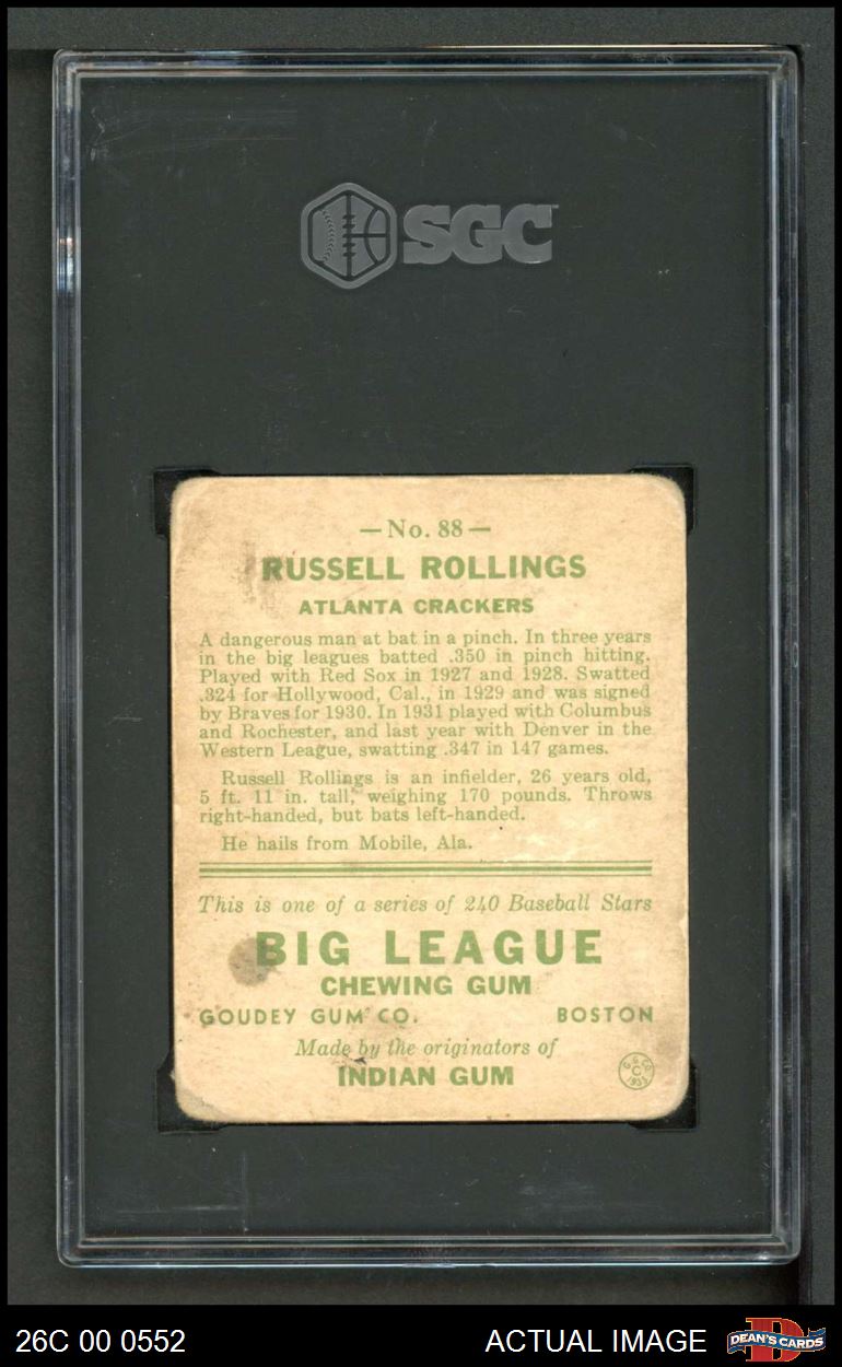 1933 Goudey #88 Russell Rollings SGC 1 - POOR