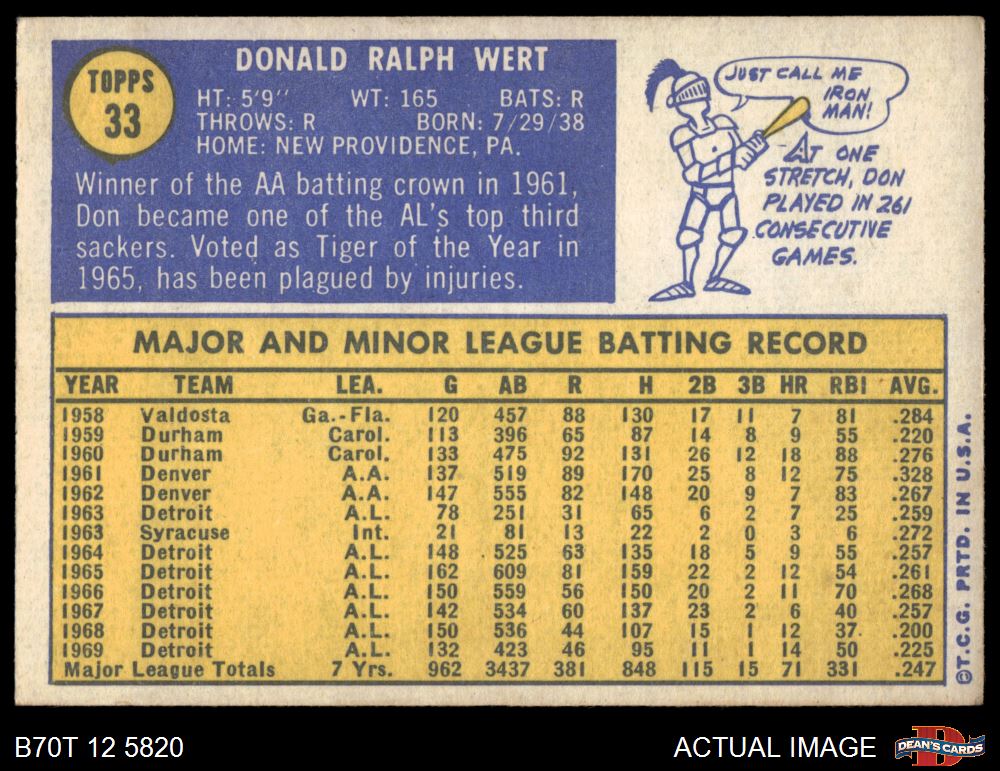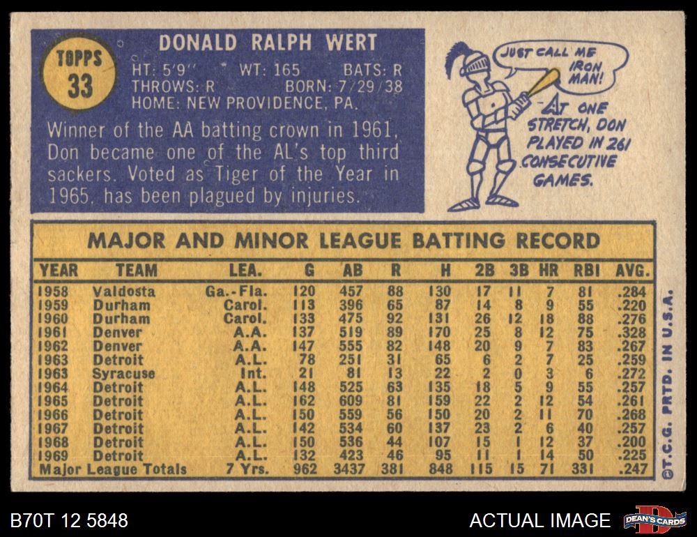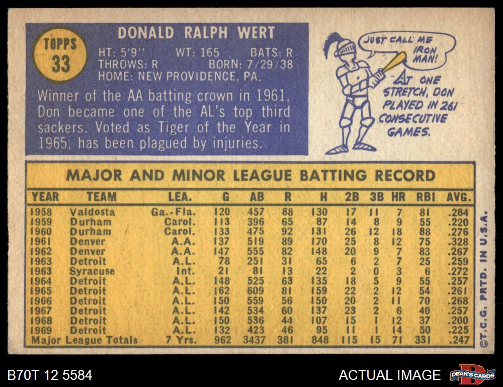 1970 Topps #33 Don Wert 5 - EX